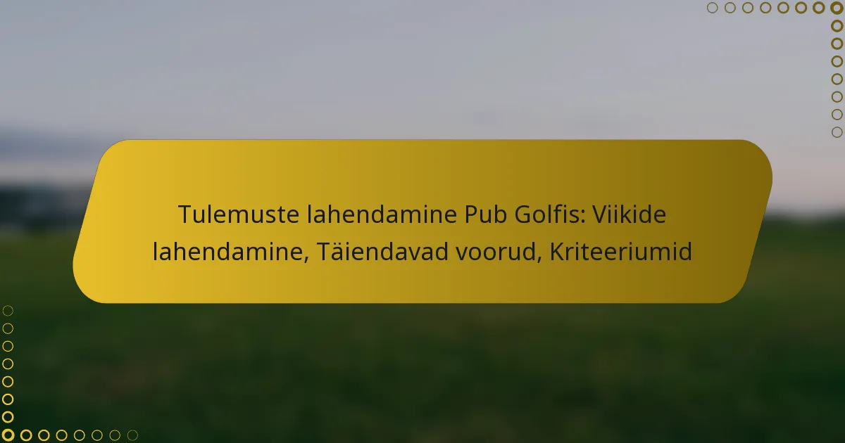 Viikide lahendamiseks pub golfis saab kasutada mitmeid kriteeriume mängijate soorituse hindamiseks. Need kriteeriumid hõlmavad lõpetatud augude arvu, sooritatud löökide täpsust, reeglite rikkumise eest karistuspunktide arvestust, skoorimise järjepidevust voorude vahel ja mängijate käitumist. Nende aspektide hindamine aitab määrata osalejate üldist oskust ja spordimehelikkust.